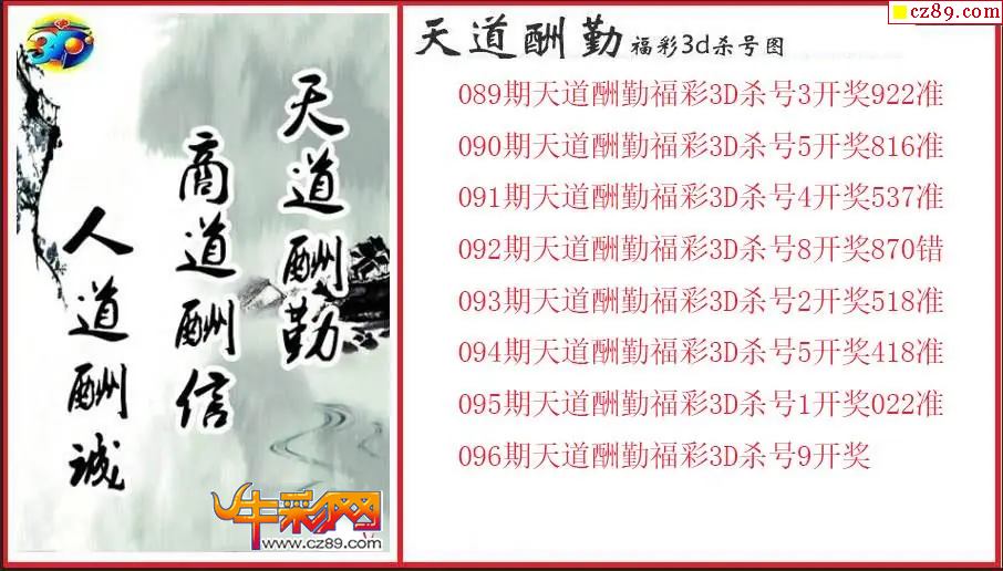 > 26年096期3d 天道酬勤杀号图