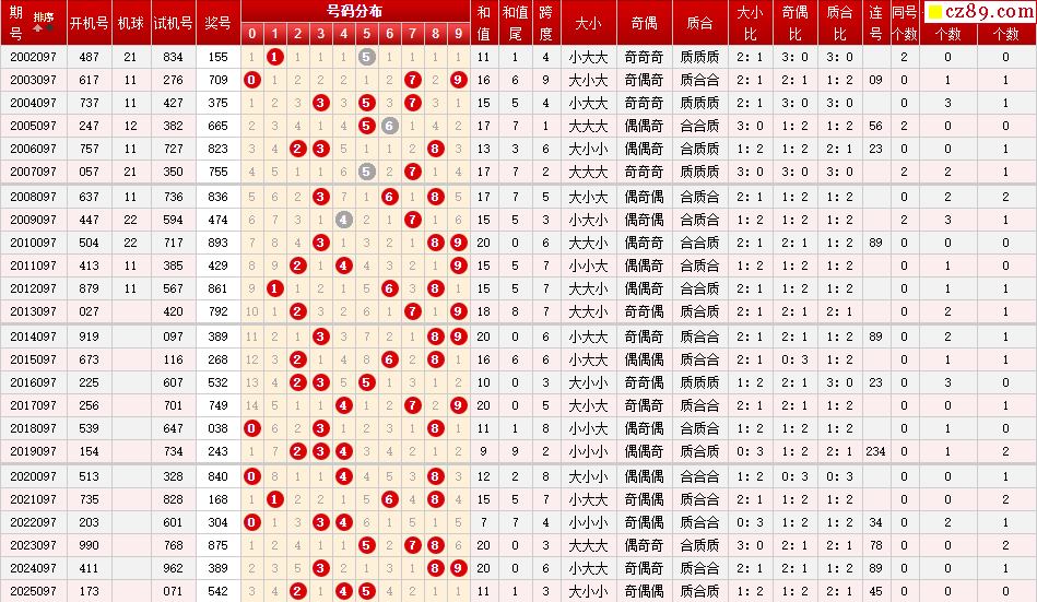 第097期福彩3D历史同期对比